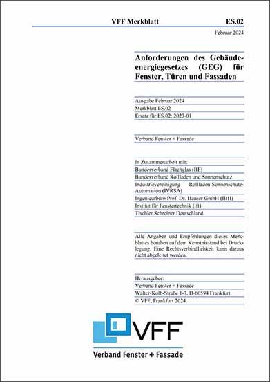Das VFF-Merkblatt ES.02: 2024-02 »Anforderungen des Gebäudeenergiegesetzes (GEG) für Fenster, Türen und Fassaden« ist als Leseprobe unter www.window.de im VFF-Bereich »Publikationen / Shop« unter »VFF-Merkblätter – materialspezifische Themen« in Auszügen einzusehen.